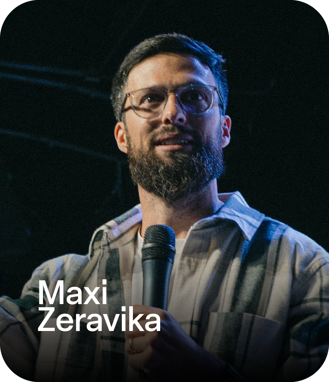 Maxi Zeravika es líder del staff principal de MiSion y profesor de diversas materias del instituto. Es parte del liderazgo del grupo de Jóvenes de la Iglesia El Encuentro en Luis Guillón y tiene una fuerte carga por preparar a la iglesia para atravesar en victoria las dinámicas de los últimos tiempos . Vive en Buenos Aires junto a su esposa Antonella y su hijo Manuel.